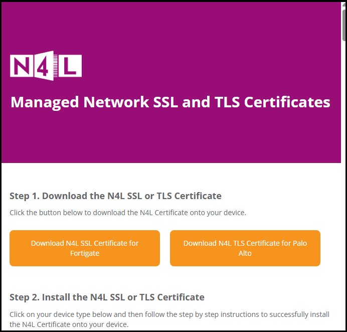 - Download the certificate file from the N4L Managed Network SSL and TLS Certificates page.