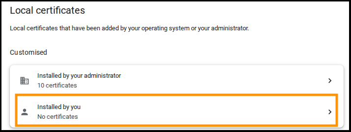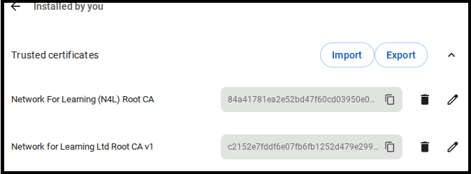 Note: If your network has a number of Chromebook devices, and your school uses G Suite for Education, you may prefer to deploy the certificates via the Device Management section of G Suite Admin.