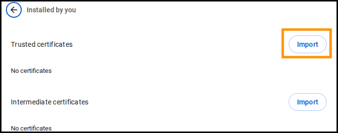 8. Under the Trusted Certificates, click the Import button.