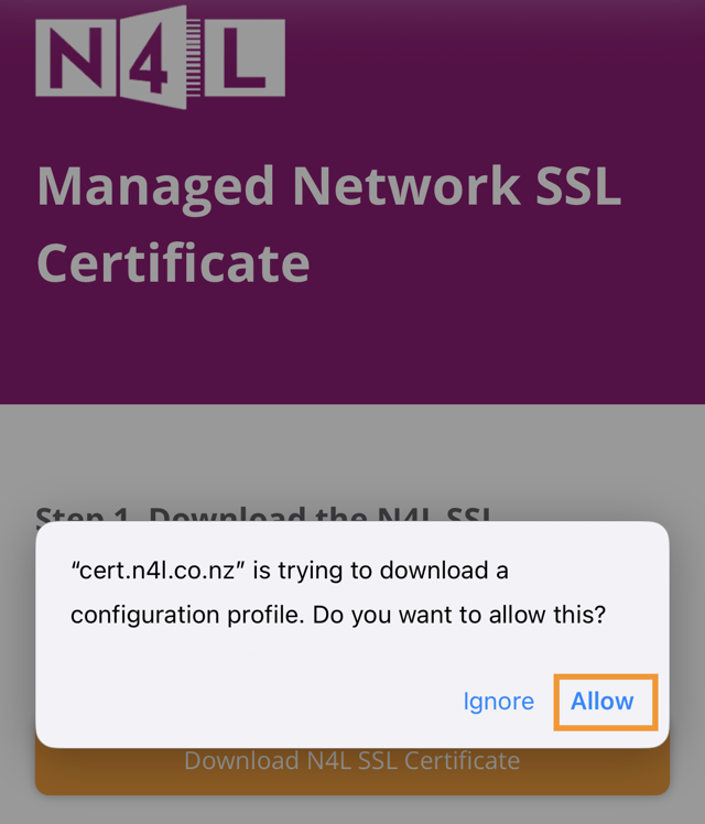 3. A pop up window will appear, tap Allow to download the certificate.