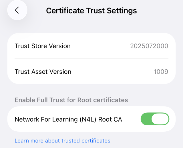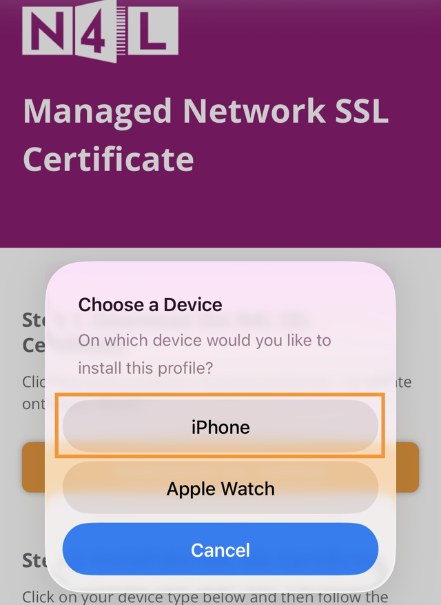 1. Access the N4L Managed Network SSL and TLS Certificates page on the iOS device.
